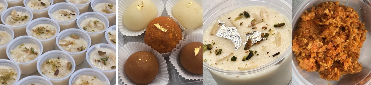 Rice Pudding, Carrot Halva and Methai.